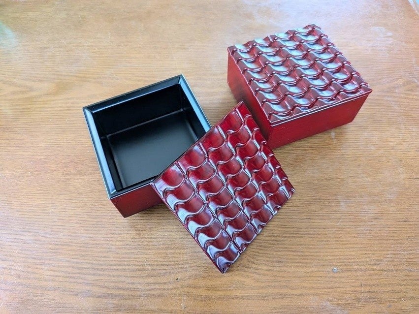 高岡漆器とのコラボ作品について 漆重箱(高岡漆器×大阪欄間彫刻)