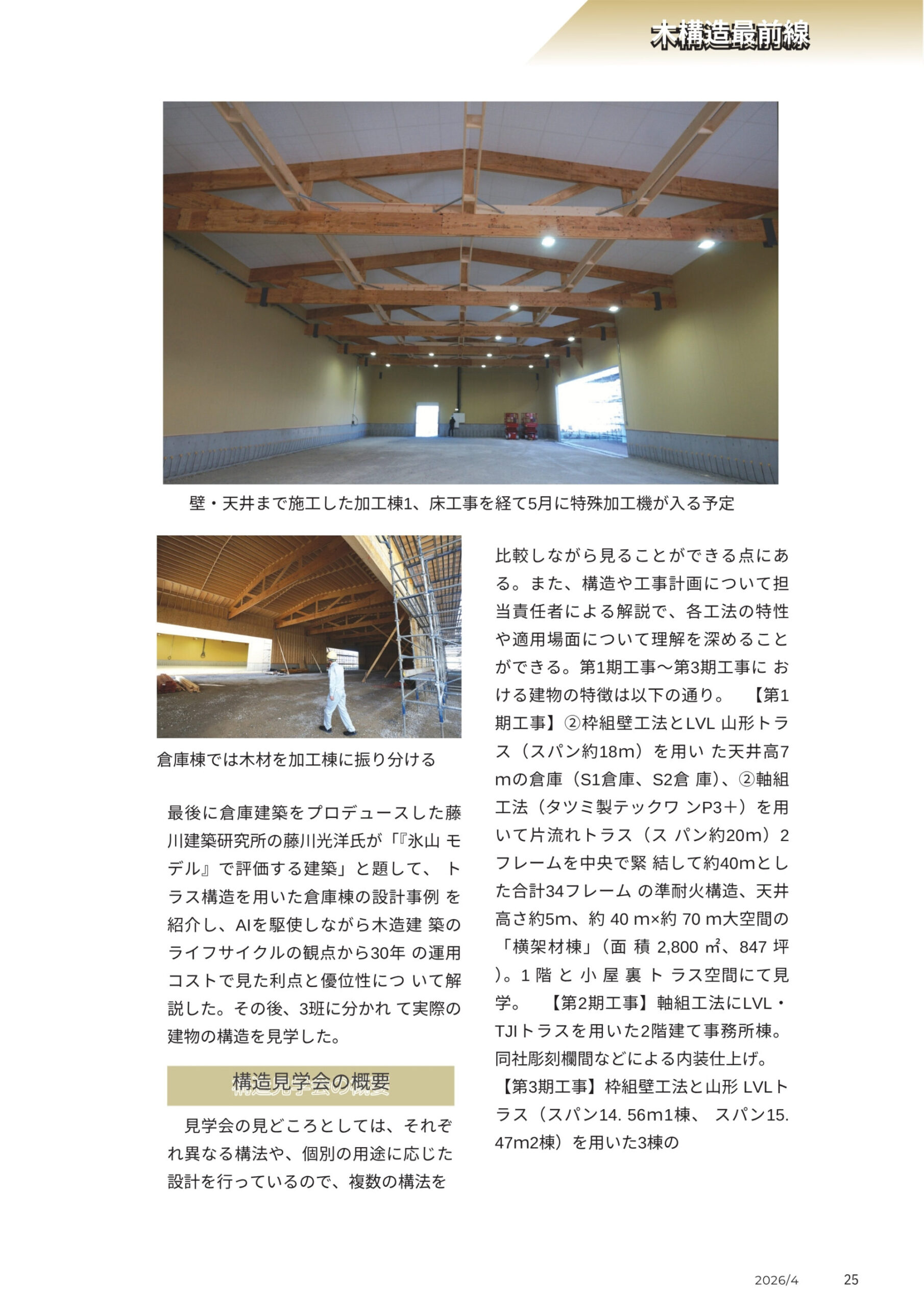 news【専門誌掲載】「その構造 木造にしませんか?」 トラス構造による木造工場・倉庫が特集掲載