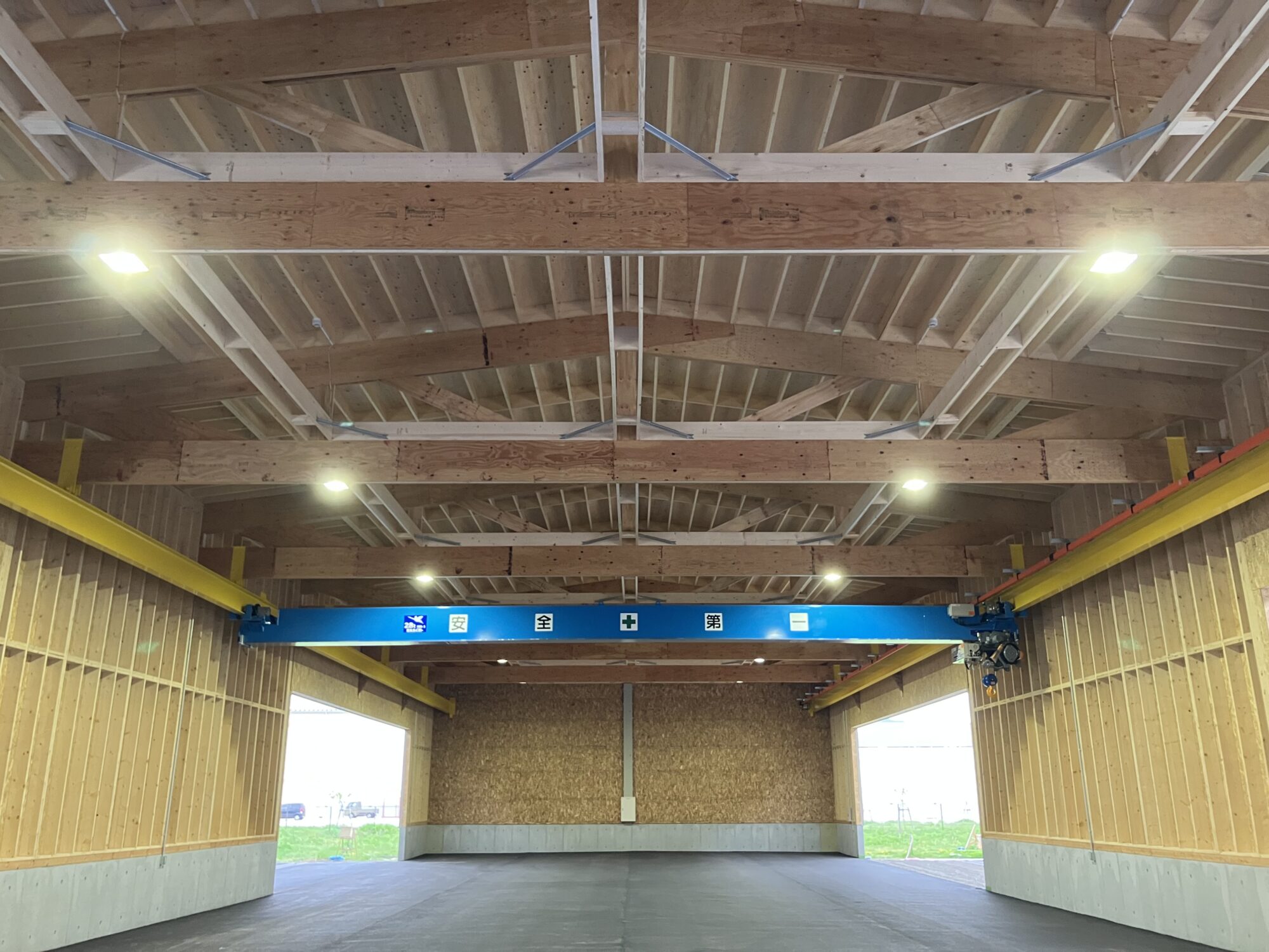 「木造ではクレーン設置は難しいのでは」という声も多い中、当社では構造計画と施工ノウハウにより、木造倉庫・工場でも実用的なクレーン運用が可能であることを実証しています。